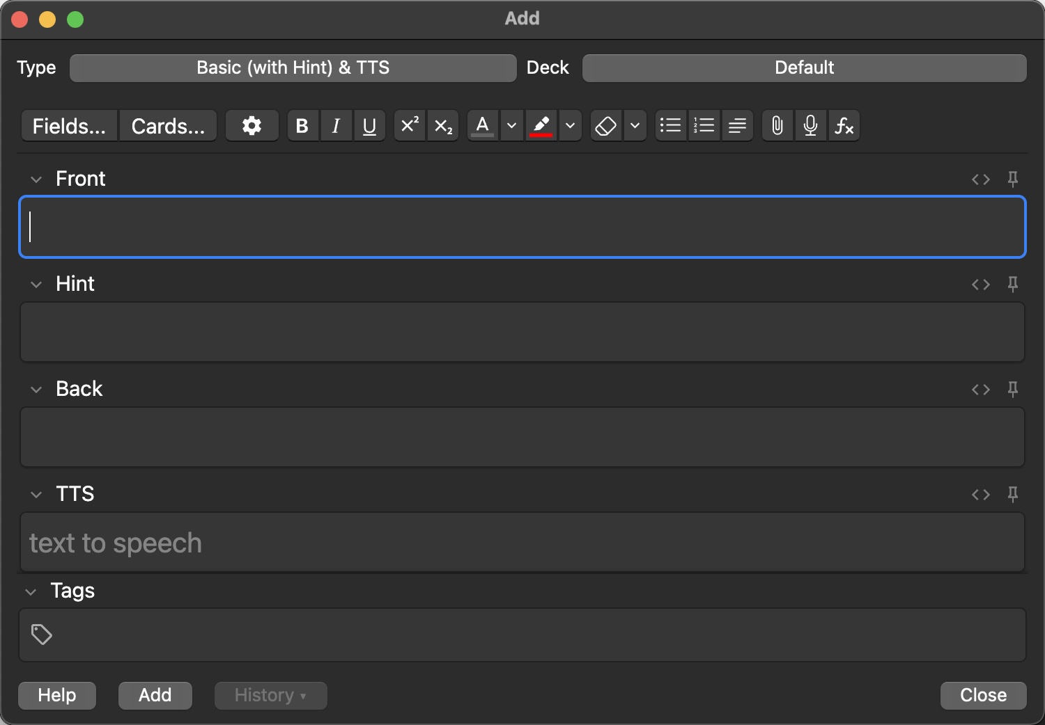 Enriching your cards with TTS, hints, and examples creates more “mental anchors” for remembering vocabulary.
